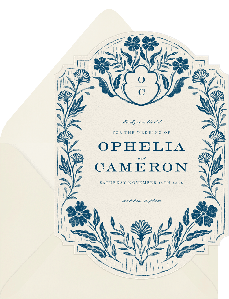 Etched Floral Crest Save the Date